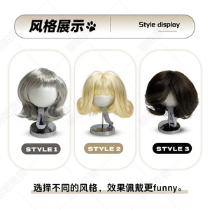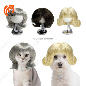 新款宠物猫狗同款刘海中分卷发打造俏皮可爱萌趣造型假发现货批发