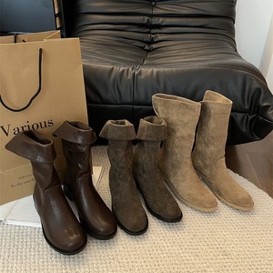 2025夏秋新款粗低跟骑士靴子韩版潮圆头中筒靴时尚两穿休闲时装靴