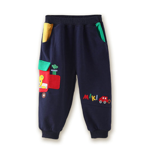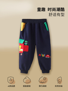 miki秋季儿童长裤男女童卡通休闲卫裤束口宽松童装裤子刺绣贴片
