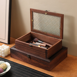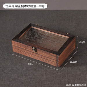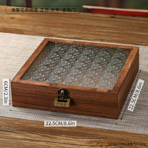 古典海棠玻璃木质储物盒珠宝首饰伴手礼包装盒防尘翻盖桌面收纳盒