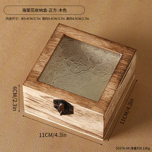 5037A-0410海棠花收纳盒-正方-木色+复古三位