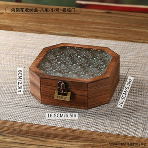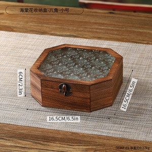 5037A-0110海棠花收纳盒-八角-黑胡桃色+复古三位