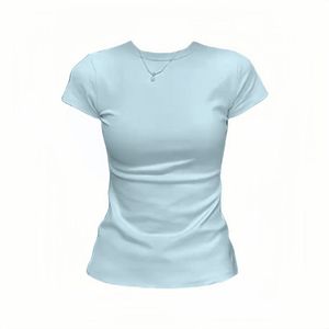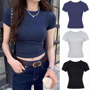 2025小红书爆款正肩圆领短袖T恤女夏季新款基础款圆领百搭修身显