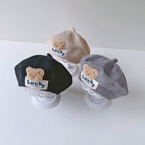 保暖儿童贝雷帽韩版秋冬小熊毛线针织帽男女童可爱卡通宝宝画家帽