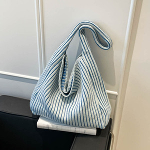 秋冬新款慵懒风编织托特包时尚条纹撞色学生单肩包百搭小众斜挎包