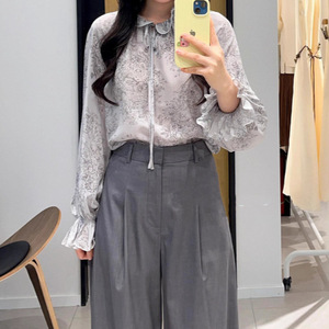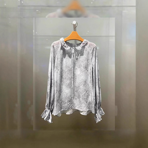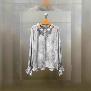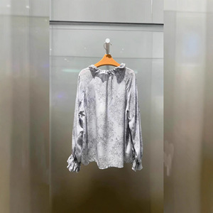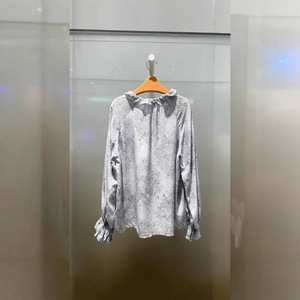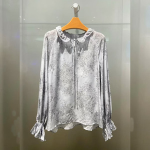 2025秋季新款女装气质百搭水墨印花衬衫上衣长袖荷叶边5G8122861
