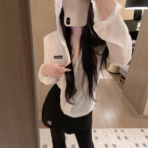 mi u 打底衫蕾丝连帽防晒衣T恤女25早秋8月新品微透薄款长袖外套