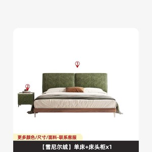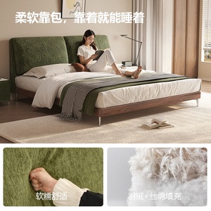 中古风大象耳朵床白蜡木软包布艺雪尼尔床轻奢1.8米复古主卧婚床