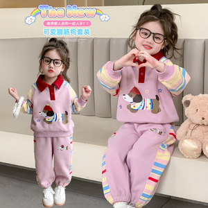 【48h发货】女童卫衣中小童洋气春秋POLO儿童套装童装两件套宝宝
