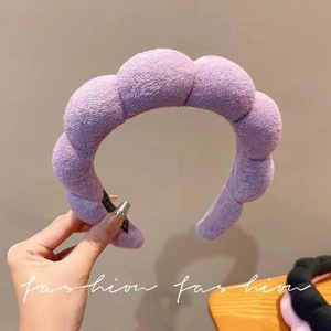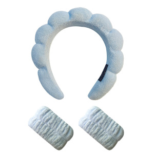 跨境海绵云朵发箍批发高颅顶高级感毛巾布麻花女士洗脸手腕带头箍