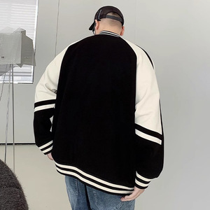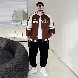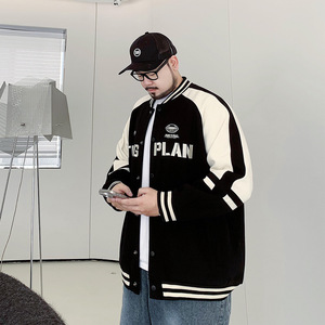 美式复古潮牌棒球服男春秋季胖子加肥加大码宽松休闲立领夹克外套