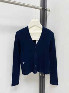 高定D家25年早秋小蜜蜂刺绣设计感坑条V领短款针织开衫上衣女