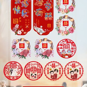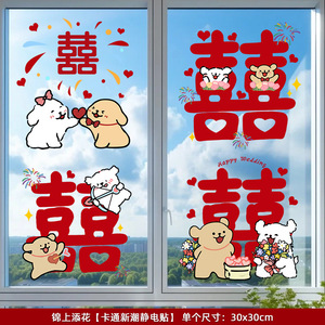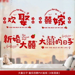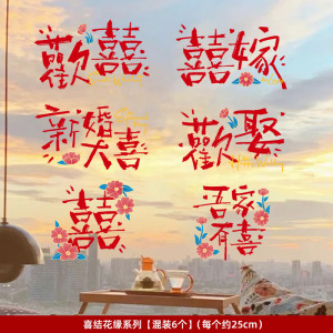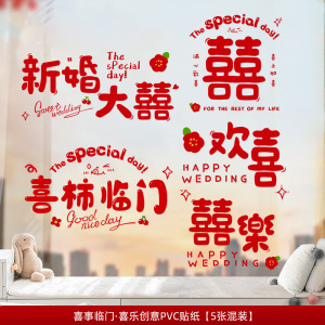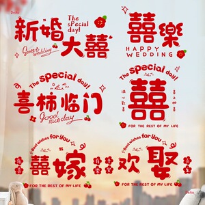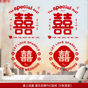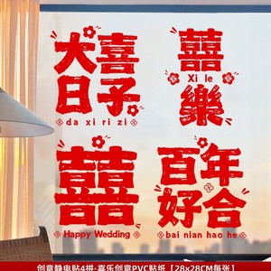结婚装饰喜字贴静电贴喜字窗户婚庆用品玻璃窗花贴纸婚房布置套装