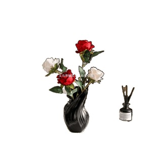 扭扭花瓶B款黑釉+2香槟玫瑰2红玫瑰