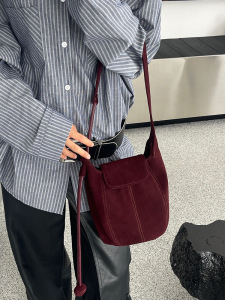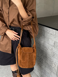 高级感包包女2025新款小众真皮水桶包磨砂牛皮纹腋下单肩斜挎包
