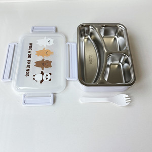 日系卡通304不锈钢饭盒保温加热便当盒饭菜分离带餐具午餐盒批发