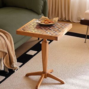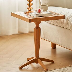 中复古樱桃实木小茶几阳台花砖咖啡圆桌子日式移动方茶桌沙发边几