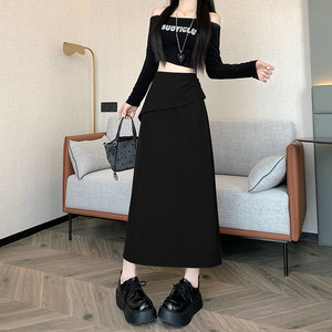 2025年秋季新款高腰气质中长裙A字裙褶皱小众纯色半身裙