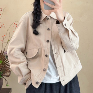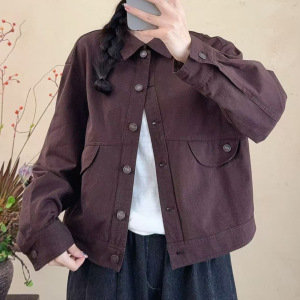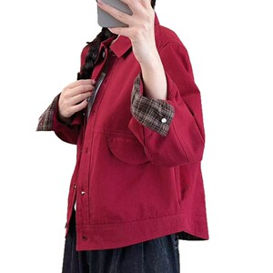 春秋新款红色短外套女棉质宽松大码百搭秋季穿搭感上衣女装
