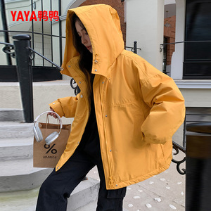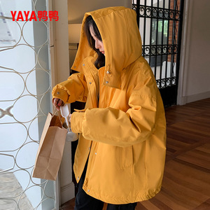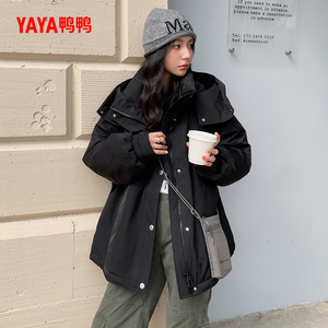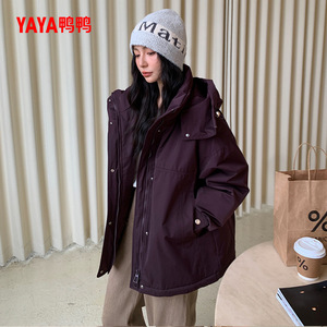 鸭鸭羽绒服女士2025年冬季新品时尚长款连帽保暖加厚90鸭绒外套S