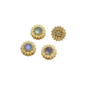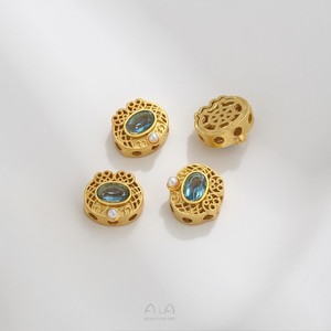 哑金色保色古法镶彩锆猫眼石蕾丝花边圆形椭圆形隔珠diy通孔散珠