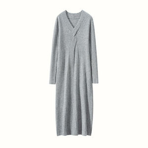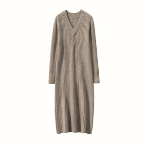 山羊绒新款连衣裙女V领扭花高腰过膝一步裙保暖抽条显瘦包臀裙