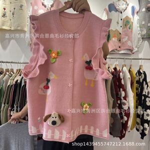 甜美可爱立体花朵针织马甲外套女宽松显瘦百搭无袖坎肩背心上衣潮