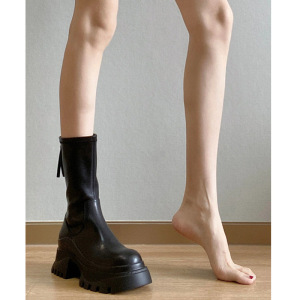 羊皮版!英伦风马丁靴女小个子厚底弹力瘦瘦靴软皮中筒短靴