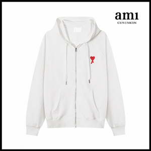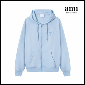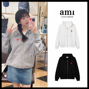AM*男女同款拉链连帽卫衣爱心刺绣休闲宽松棉质开衫外套跨境代发