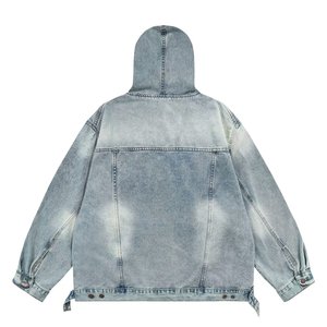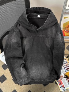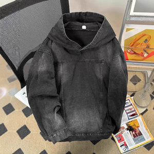 水洗做旧连帽夹克男春秋季美式街头ins潮牌宽松复古痞帅牛仔帽衫