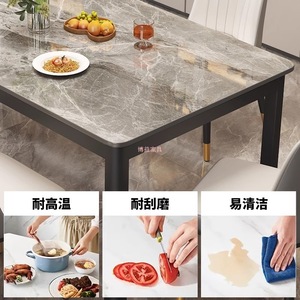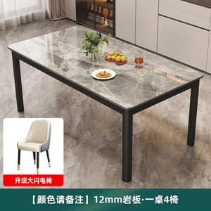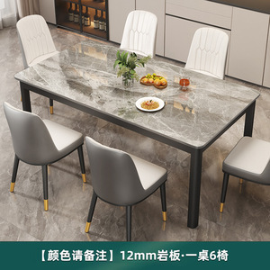 岩板餐桌轻奢现代简约家用小户型长方形餐厅饭桌岩板餐桌椅组合