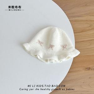 婴儿帽子秋冬季甜美女孩公主帽女宝宝蝴蝶结渔夫帽女童针织毛线帽