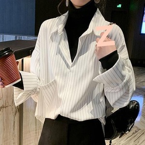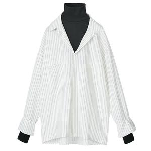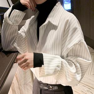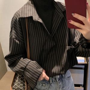 盐系女衬衫女设计感小众2025春秋新款流行条纹内搭假两件叠穿衬衣