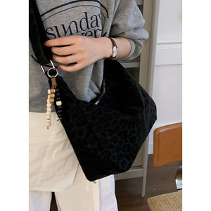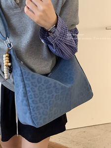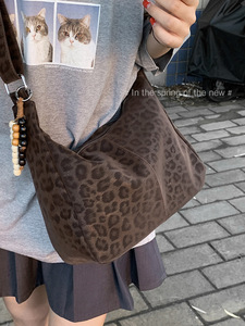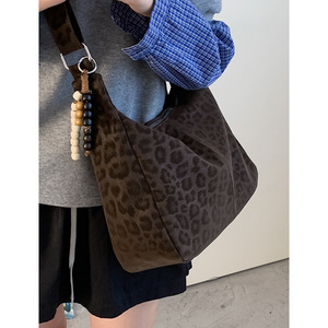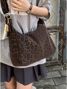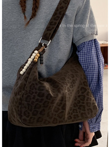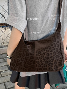 2025腋下托特包单肩斜挎包高级新款感复古麂皮绒包包女跨境豹纹