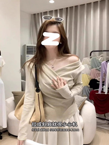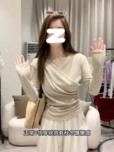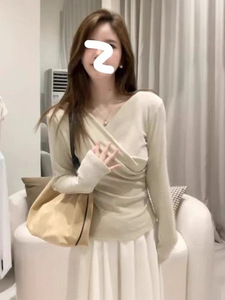 大码胖妹妹可多种穿法交叉领女2025春季上衣显瘦纯欲长袖打底衫潮