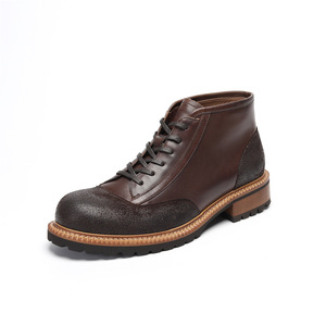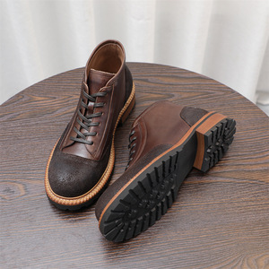 拼接牛皮靴子男机车靴真皮英伦马丁靴男高帮工装靴阿美咔叽中帮鞋