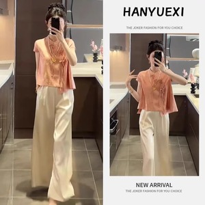 贵气感穿搭套装刺绣盘扣设计感国风上衣女高级感宽松阔腿裤两件套
