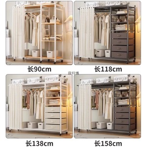 简易衣柜钢制布衣柜卧室分层收纳家具防尘衣橱出租房开放式衣帽架
