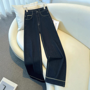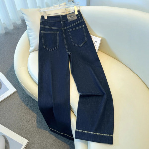 高腰丹宁蓝阔腿牛仔裤女春秋季2025新款时尚潮流直筒裤深色拖地裤