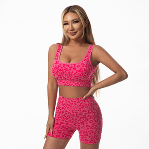 跨境欧美热销高腰收腹豹纹瑜伽套装外穿跑步蜜桃提臀紧身健身套装