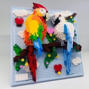 跨境爆款小颗粒拼装积木玩具立体壁画大象鹦鹉鲨鱼动物积木墙批发