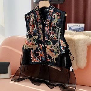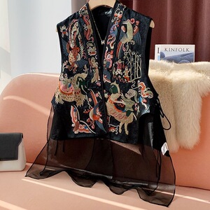 新中式轻国风刺绣马甲背心拼接网纱设计感2025夏季新款高级感马夹