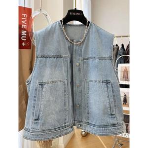 时尚牛仔马甲女春秋时髦洋气外穿短款背心外套无袖坎肩叠穿上衣潮