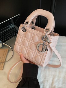跨境轻奢高级感小香风夏季时尚百搭手提单肩斜挎菱格小方包戴妃包