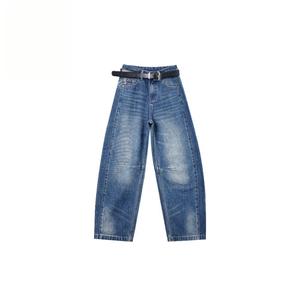 杨幂蓝色阔腿牛仔裤女秋季明星同款复古高腰显瘦宽松直筒裤子