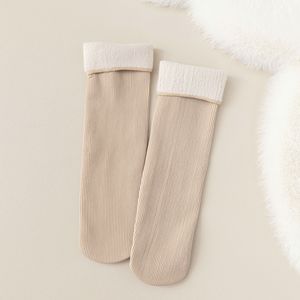 德绒雪地袜女冬季加绒加厚竖条纹家居保暖纯色中筒彩色地板袜批发