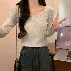 实拍纯棉螺纹1*1打底衫女2025秋季新款薄修身纯色圆领长袖t恤上衣