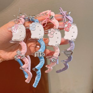 儿童卡通kt猫蝴蝶结发箍女孩带齿防滑高颅顶头箍女童波浪可爱头饰