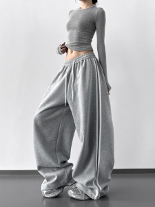 今年流行2025新款美式复古休闲裤女秋季新款宽松显瘦阔腿运动卫裤