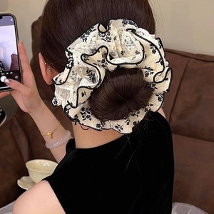 法式网纱蕾丝四层大肠发圈025新款黑色花朵头绳丸子头发饰花边